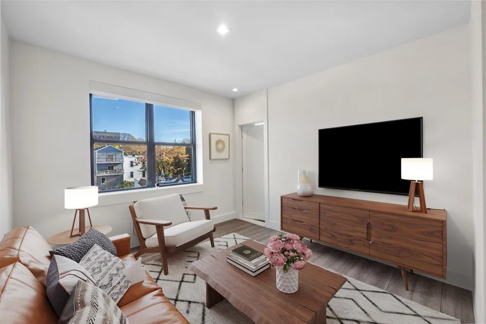 Welcome to your modern oasis at 43-49 Van Wagenen Avenue, Unit 4A, in the vibrant heart of Jersey City, NJ. This fully renovated two-bedroom, one-bathroom residence offers a seamless blend of contemporary design and comfortable living with a parking spot. Step inside to discover a thoughtfully designed open-concept layout that maximizes space and natural light. The living area is perfect for relaxation and entertainment, featuring sleek finishes and a neutral palette that complements any style. The state-of-the-art kitchen boasts high-end stainless steel appliances, custom cabinetry, and elegant countertops, making it a chef's dream. Both bedrooms are generously sized, offering ample closet space and large windows that invite an abundance of sunlight. The modern bathroom is a sanctuary of luxury, complete with designer fixtures and a sophisticated tile design. This unit is part of a well-maintained building that offers convenience and accessibility. Located in a thriving neighborhood, you'll enjoy easy access to local dining, shopping, and entertainment options. Commuting is a breeze with nearby public transportation and major highways. Experience the perfect blend of style and function in this beautifully renovated home. Whether you're a first-time buyer or looking to downsize, this Jersey City gem is ready to welcome you home. Don't miss the opportunity to make it yours today! Unique Features of this Unit: *8.8’ - 9’ ceiling. *Additional walls, floors and ceiling insulation and soundproofing installed. *New plumbing and electrical throughout. *New windows. *New HVAC units. *Integrated FIOS High Speed Internet. *LED recessed ceiling and under cabinet lighting throughout with Lutron dimmer switches. *Marble thresholds throughout. *Nano glass countertops and window sills. *Kitchen: Ceramic slab back splash, hot water on demand, garbage disposal, air fry oven, induction cooktop, pot filler, microwave drawer, filtered water, dishwasher, powerful extractor hood above cooktop vents out cooking smells. *Floor-to-ceiling marble tiled bath with heated towel racks. *Floor to ceiling closet doors. *NEST Co2 and smoke detectors. *Remote roller shades by The Shade Store. *Private balcony off 2nd bedroom (which sets us apart from other 2 bedroom apartments). *Close proximity to Journal Square Path, Mana Contemporary, future Pompidou Museum location. *Parking $150 per month